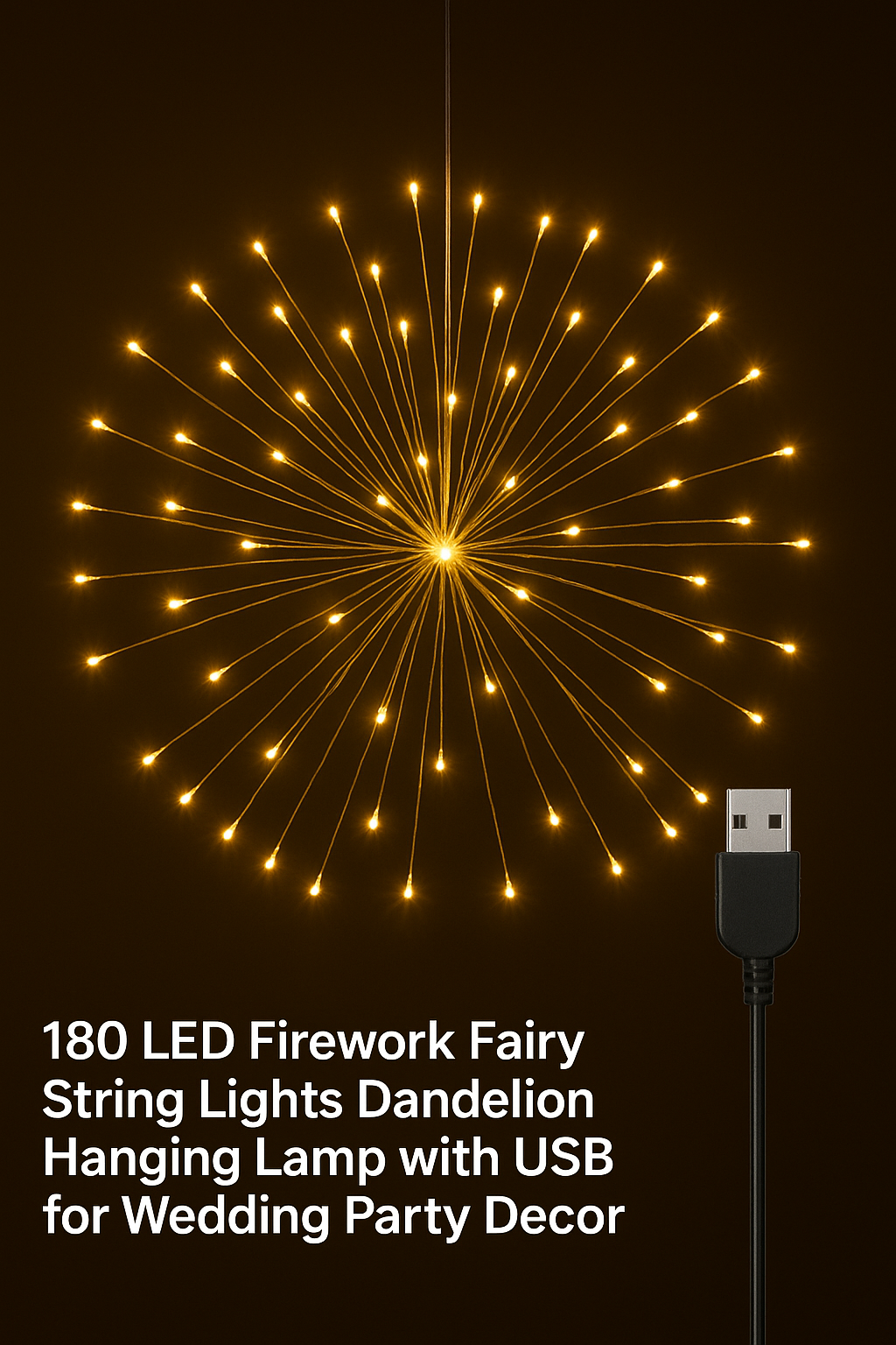 Add a magical glow to your home, garden, or event with these stunning multi-color firework fairy lights. Each light features 180 vibrant LEDs arranged like a dandelion or firework burst — perfect for weddings, parties, and festive décor.